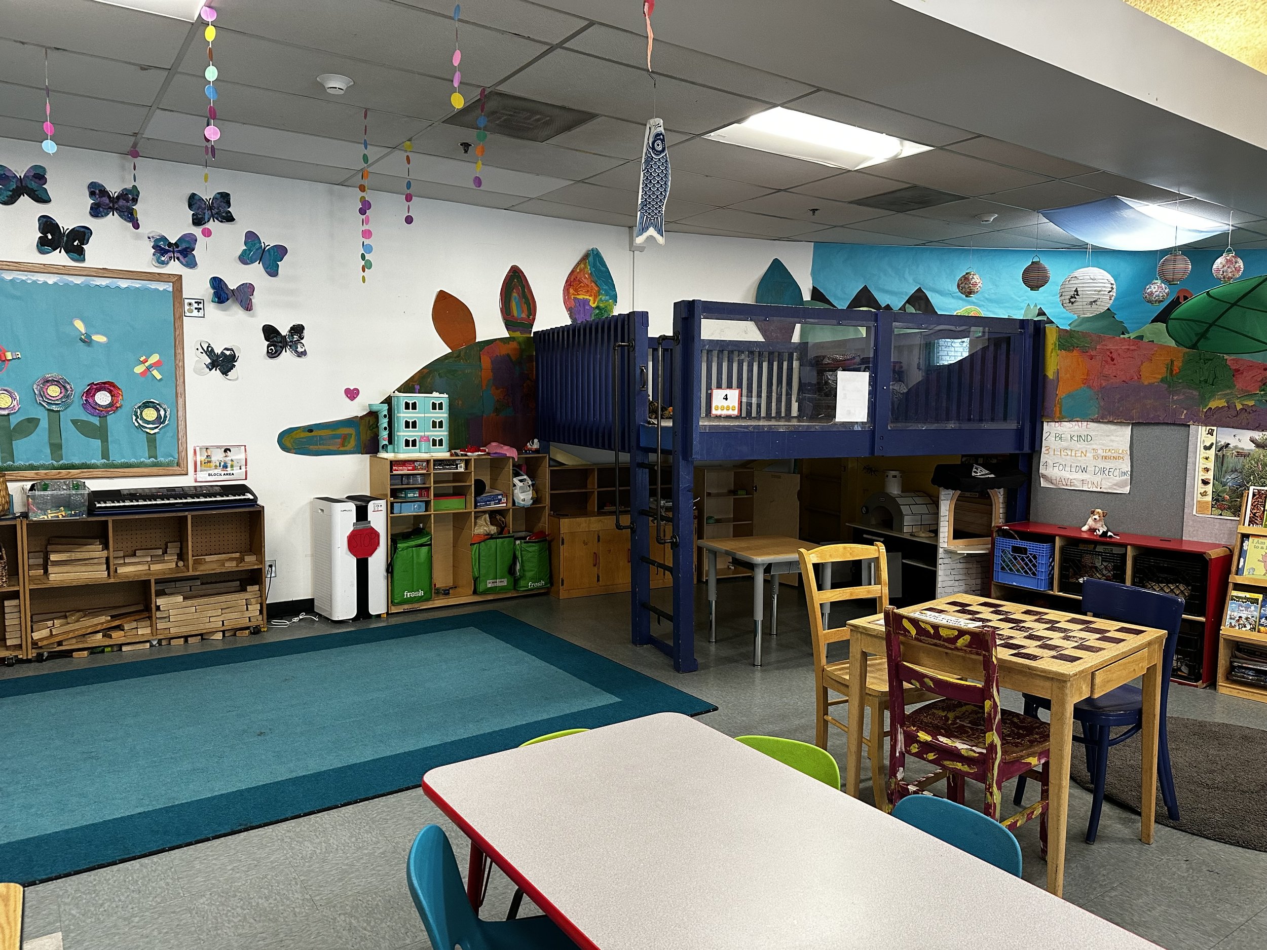 The cafeteria is where you will find our 3-5 group, where kids have access to both structured activities and free play. Group activities help develop skills and foster teamwork, while free play allows for creativity and self-directed exploration in a relaxed, welcoming space.